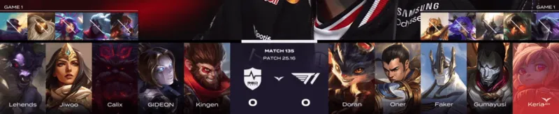 T1选用:Doran兰博、Oner赵信、Faker加里奥、Gumayusi烬、Keria波比